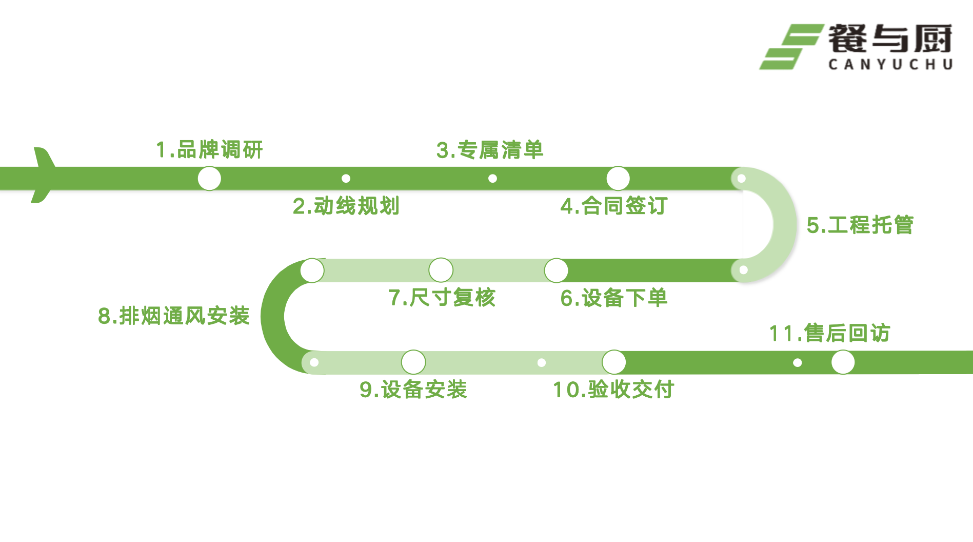 我们提供覆盖11个关键节点的全流程服务,确保厨房工程高效落地、品质交付。